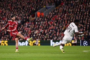 这一幕让许多利物浦球迷(或许还有球员)回忆起2022年巴黎欧冠决赛:当时库尔图瓦全场贡献9次扑救,零封对手,最终维尼修斯的单骑闯关进球帮助皇马夺冠,库尔图瓦也当选全场最佳。